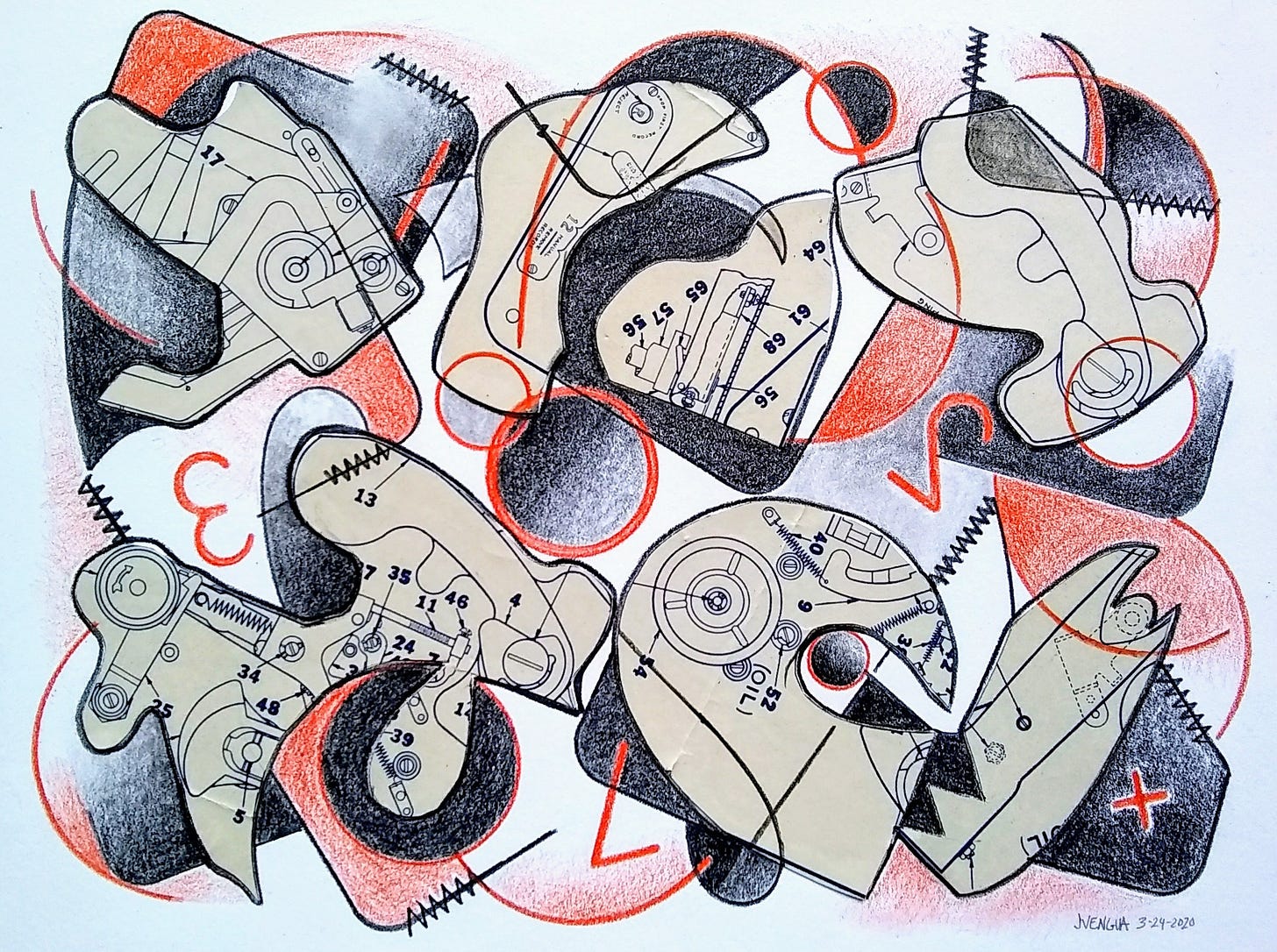 Freely Improvising: In 1990-1992, I was managing a poetry reading series at London Nelson Community Center in Santa Cruz. In the course of that series, I met two people who completely changed my perspective on writing and performing poetry: my friend Sybl Glebow (who had been a performance artist in San Francisco under the name Sybl ChickenMint), and poet/multimedia artist Chris Funkhouser. Chris had been exploring alternative methods of producing poetry publications. I soon found myself performing and recording poetry (as Jean Gier) with Sybl in Chris’s backyard under a single incandescent light bulb— sometimes to the sound of Sybl’s harmonica and various kitchen implements. See 54:06 “Skyland” in the video below. We Magazine #18: © 1993 the authors and We Press1: